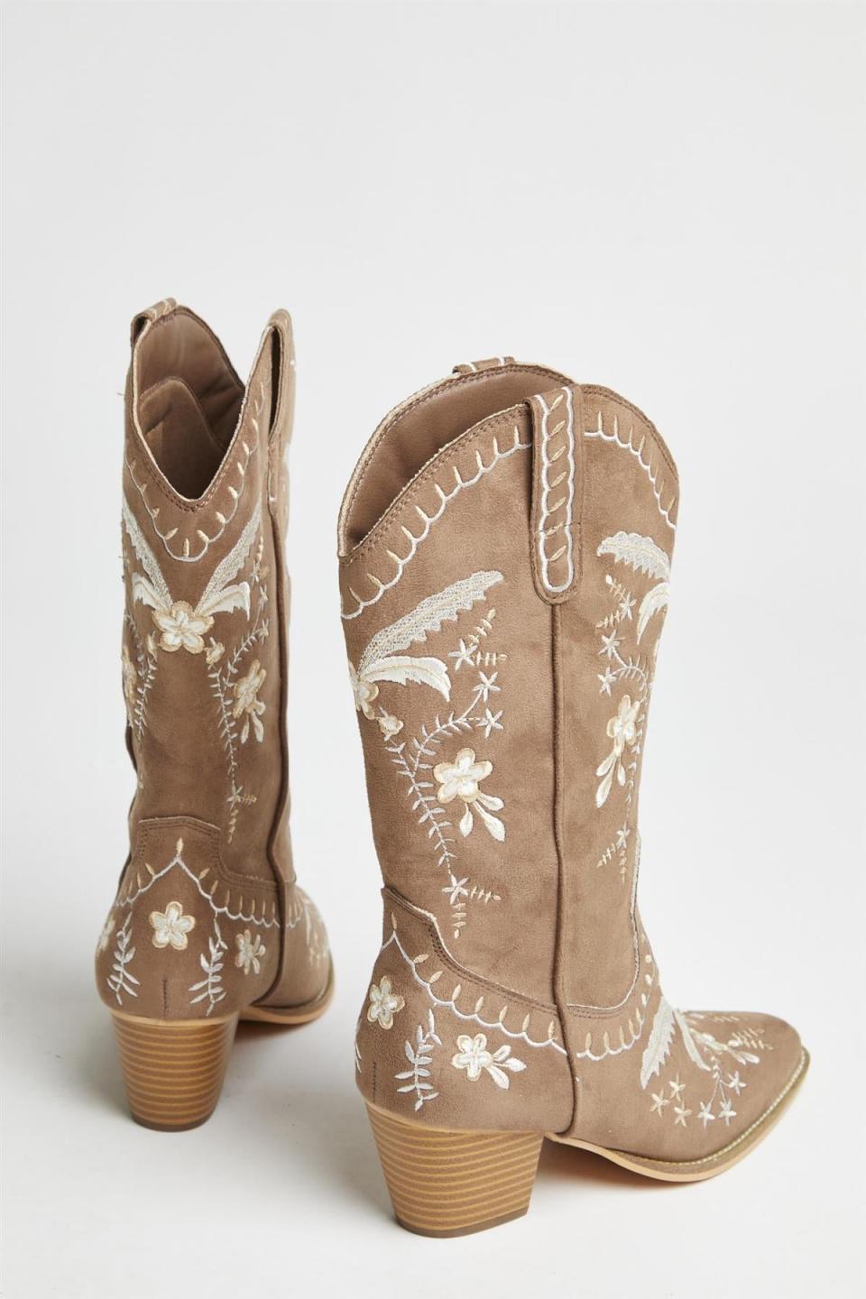 Glamorous Women’s Tan Embroidered Cowboy-Boots. Step out in style in these glamorous tan western boots! Embroidered for a luxurious vibe, they add a statement-making touch to any outfit. Wow ’em with your footwear this season! FEATURES Cowboy Boot Embroidery Detailing Composition: Upper: PU, Inner: PU, Outsole: Rubber Heel Height: 6.5cm