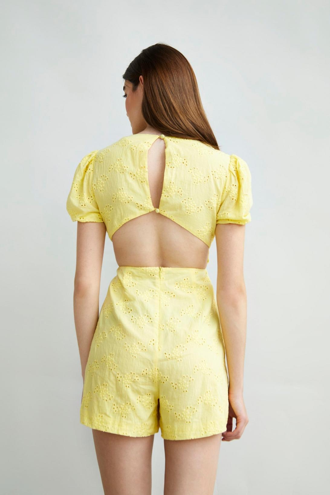 Glamorous Collection Yellow V-Neck Playsuit with Puff Sleeves. Add a pop of colour to your wardrobe with this fresh yellow playsuit.  Featuring a v neck, puff sleeves and cut-out back detail, this playsuit will have heads turning. Composition: Shell 100% Cotton, Lining 100% Cotton Model Wears Size 10. Model Height: 510. Read More