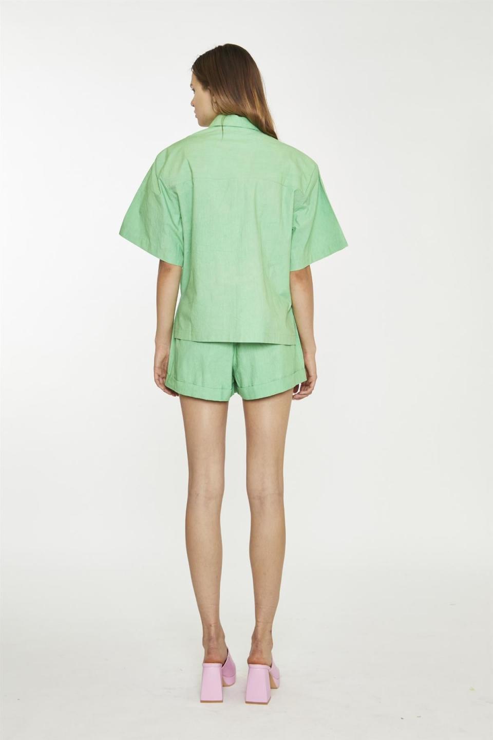 Glamorous Women’s Bright-Green Boxy -Shirt. Introducing our Bright-Green Boxy Shirt and Matching Shorts set! This playful ensemble is perfect for those who love a relaxed, comfortable style. The boxy, oversized shape provides a flattering fit, while the button-front closure and collar add a touch of sophistication. Pair the shirt with the matching shorts for a coordinated look, or mix and match with other pieces in your wardrobe. Made from high-quality materials, this set is built to last and keep you feeling confident throughout the day. Embrace your unique style and make a statement with this vibrant, eye-catching outfit. FEATURES Matching Shorts Boxy Oversized Shape Button front Collar Composition: 100% Cotton Model Wears Size 10 Model Height: 5’10”