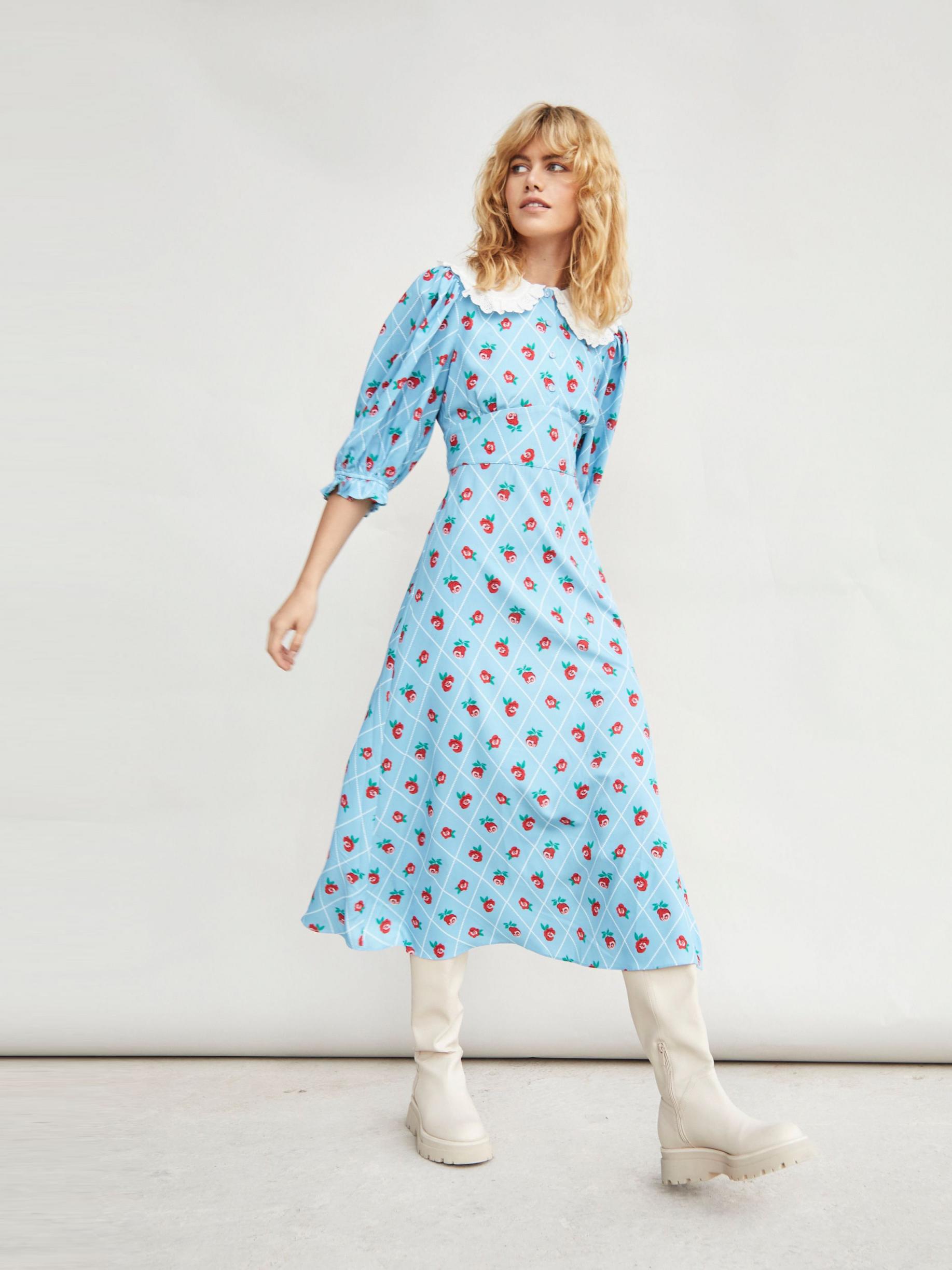 Glamorous Dresses | WOMENS Light-Blue Check V-neck Midi Tea-Dress